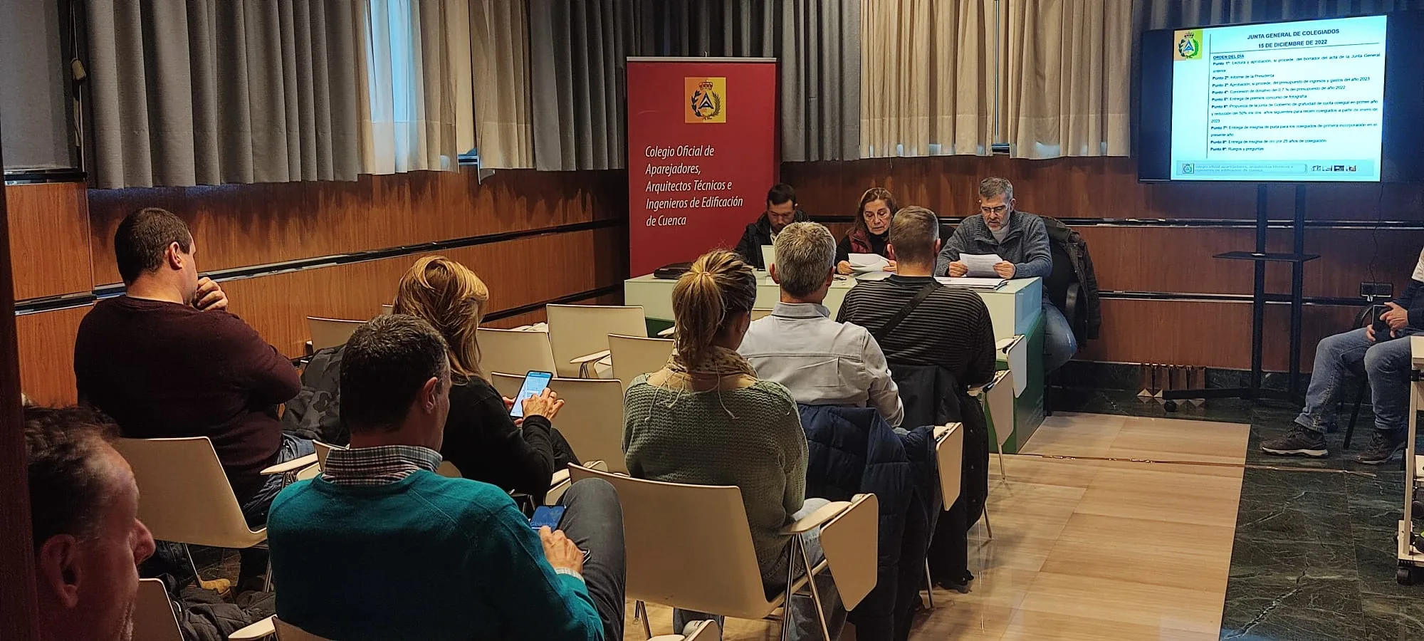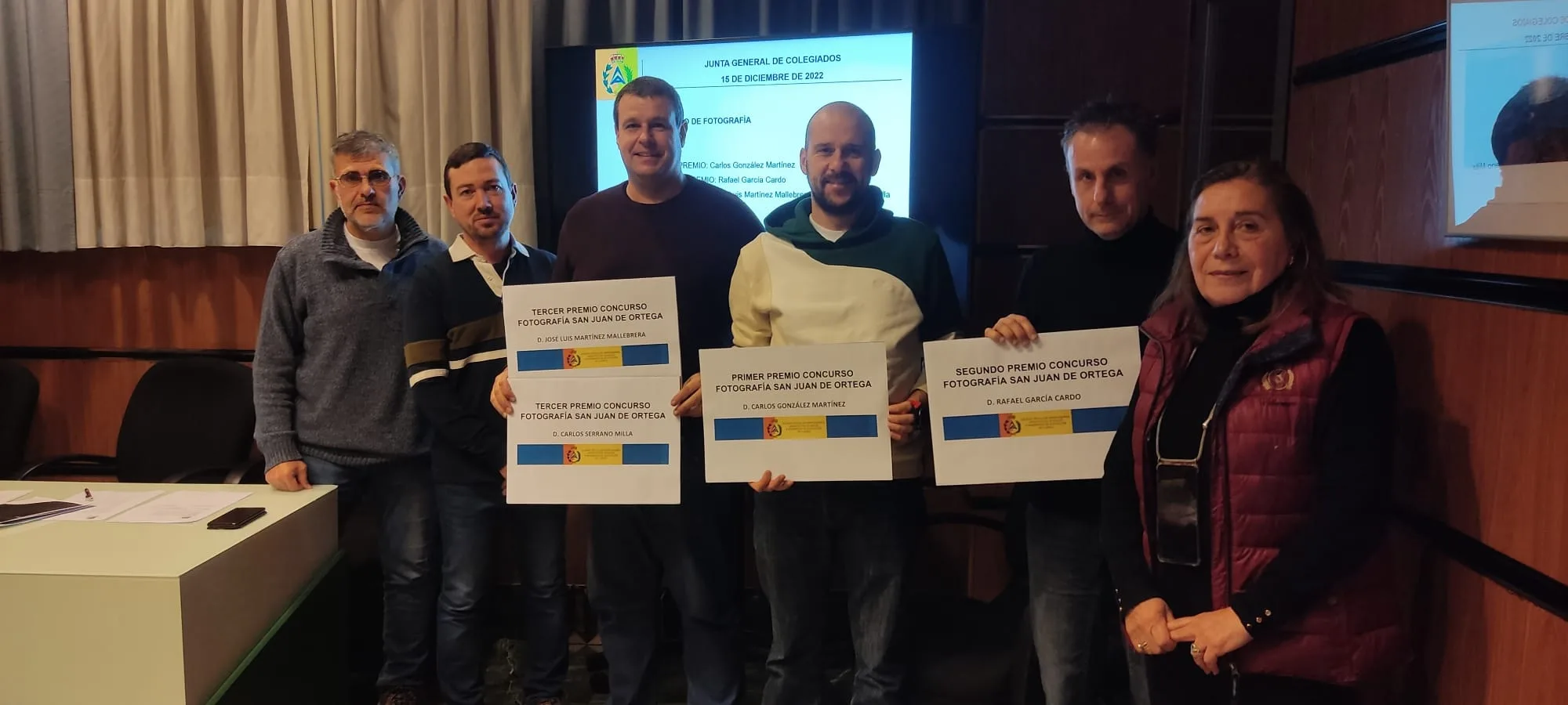 Asamblea de colegiados diciembre 2022 Asistentes asamblea Entrega de premios concurso de fotografía 2022 Entrega insignia Jaime Entrega insignia Mari Carmen Entrega insignia de oro Javier